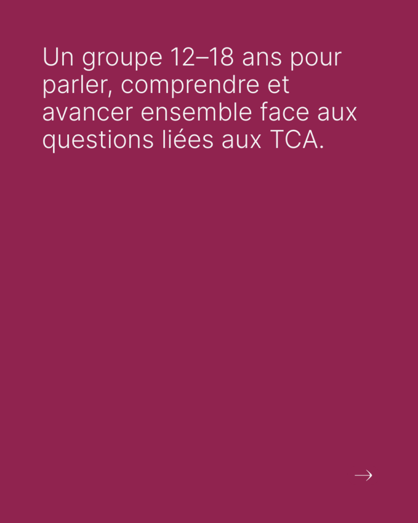 Tu souffres de TCA ? Tu te poses des questions au sujet de ta nourriture et de ton corps ? Tu as un-e proche qui souffre de TCA ? Il reste de la place pour le groupe ados!