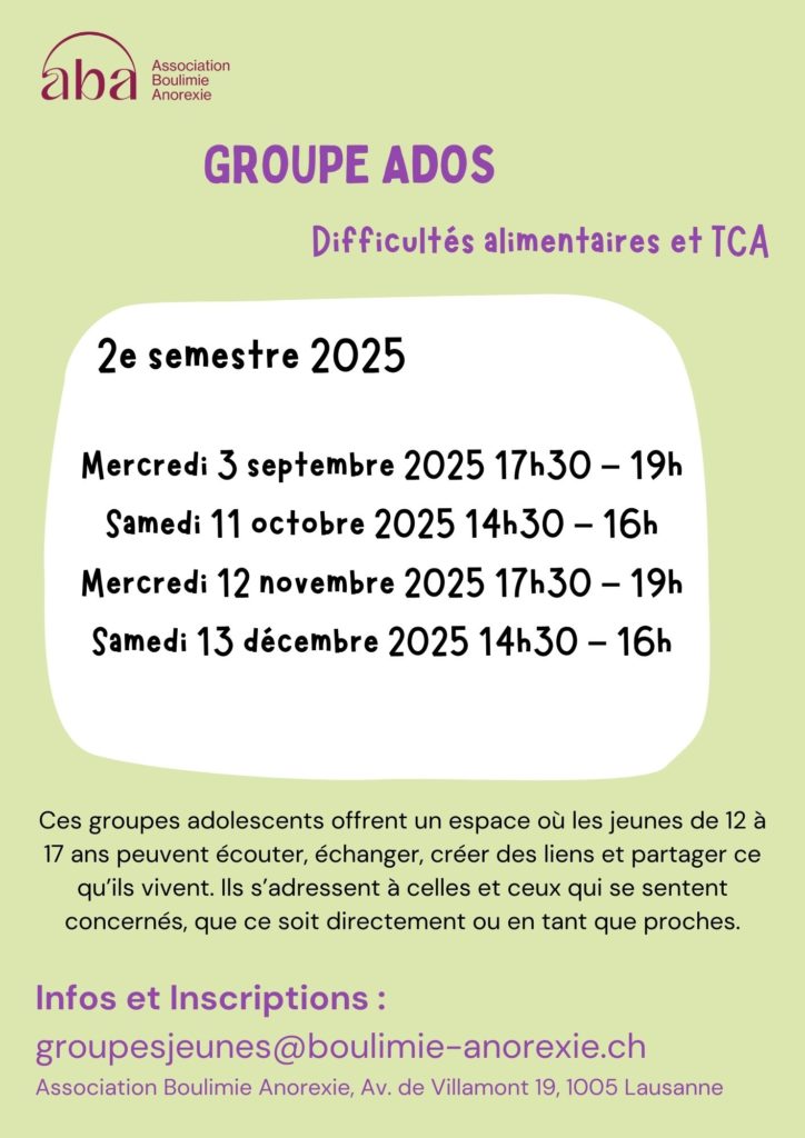 Davantage d’informations ici et Inscriptions sur : groupesjeunes@boulimie-anorexie.ch